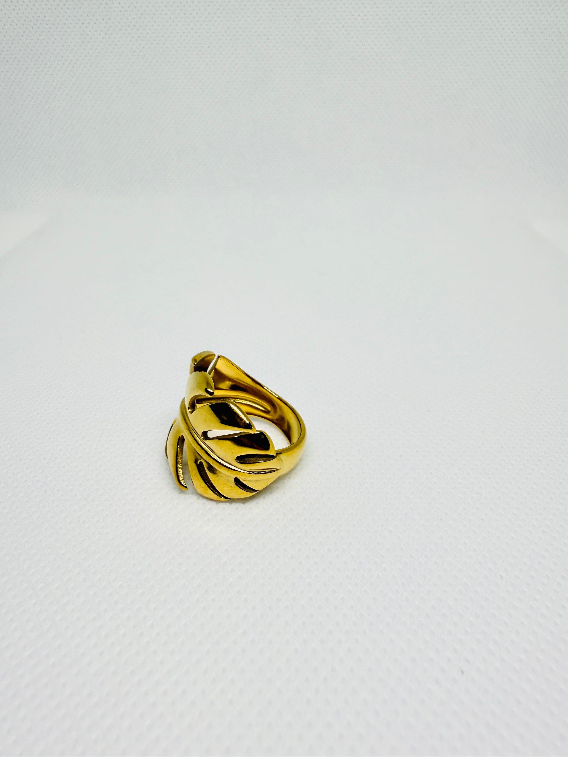 Graceful and nature-inspired, this adjustable ring features a delicate leaf design crafted in 18K gold-plated stainless steel. Durable, non-tarnish, and perfect for everyday elegance.