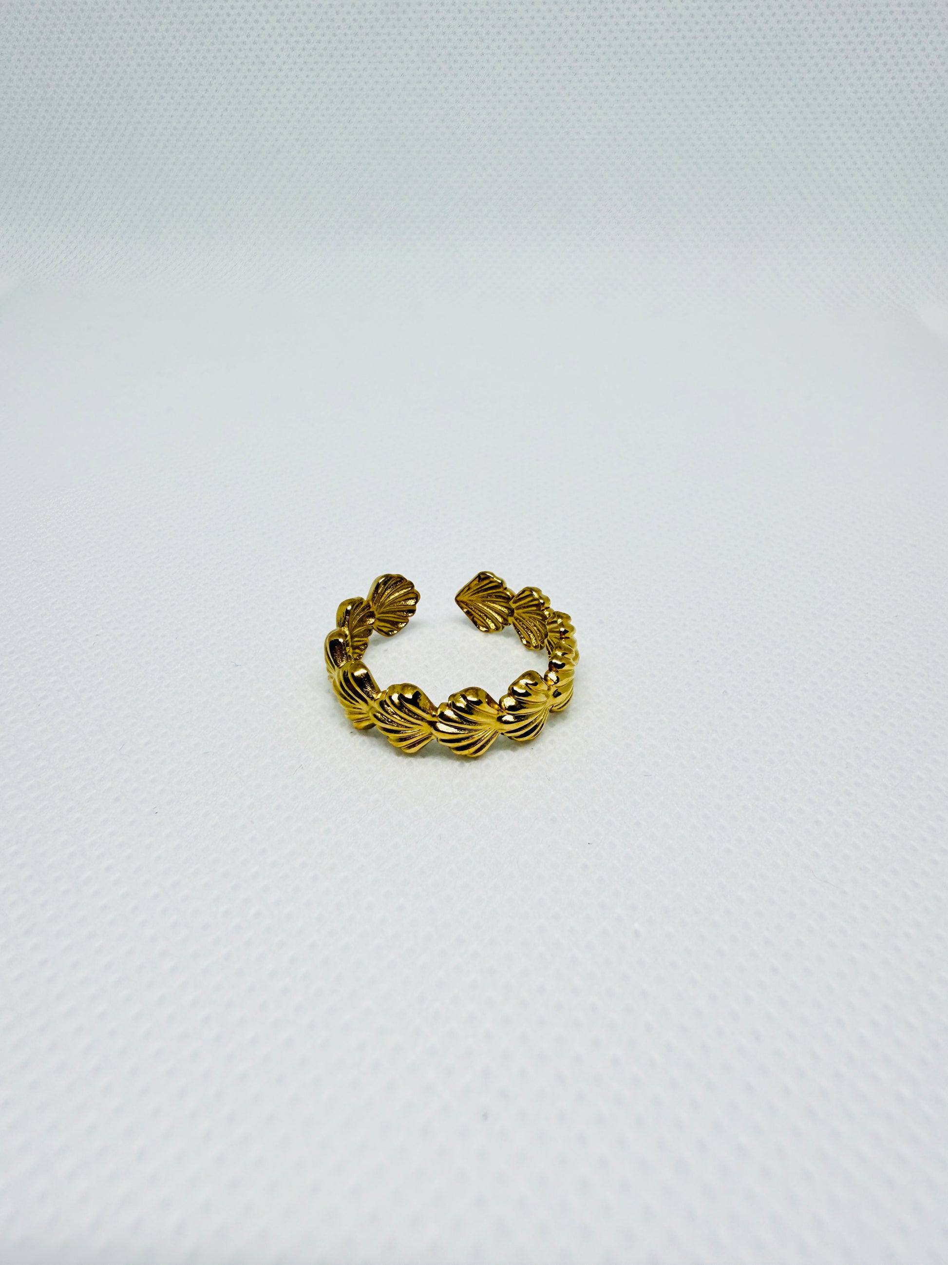 Inspired by the sea, this ring features a delicate conch shell design crafted in 18K gold-plated stainless steel. Durable, non-tarnish, and perfect for adding a touch of coastal charm to your style.