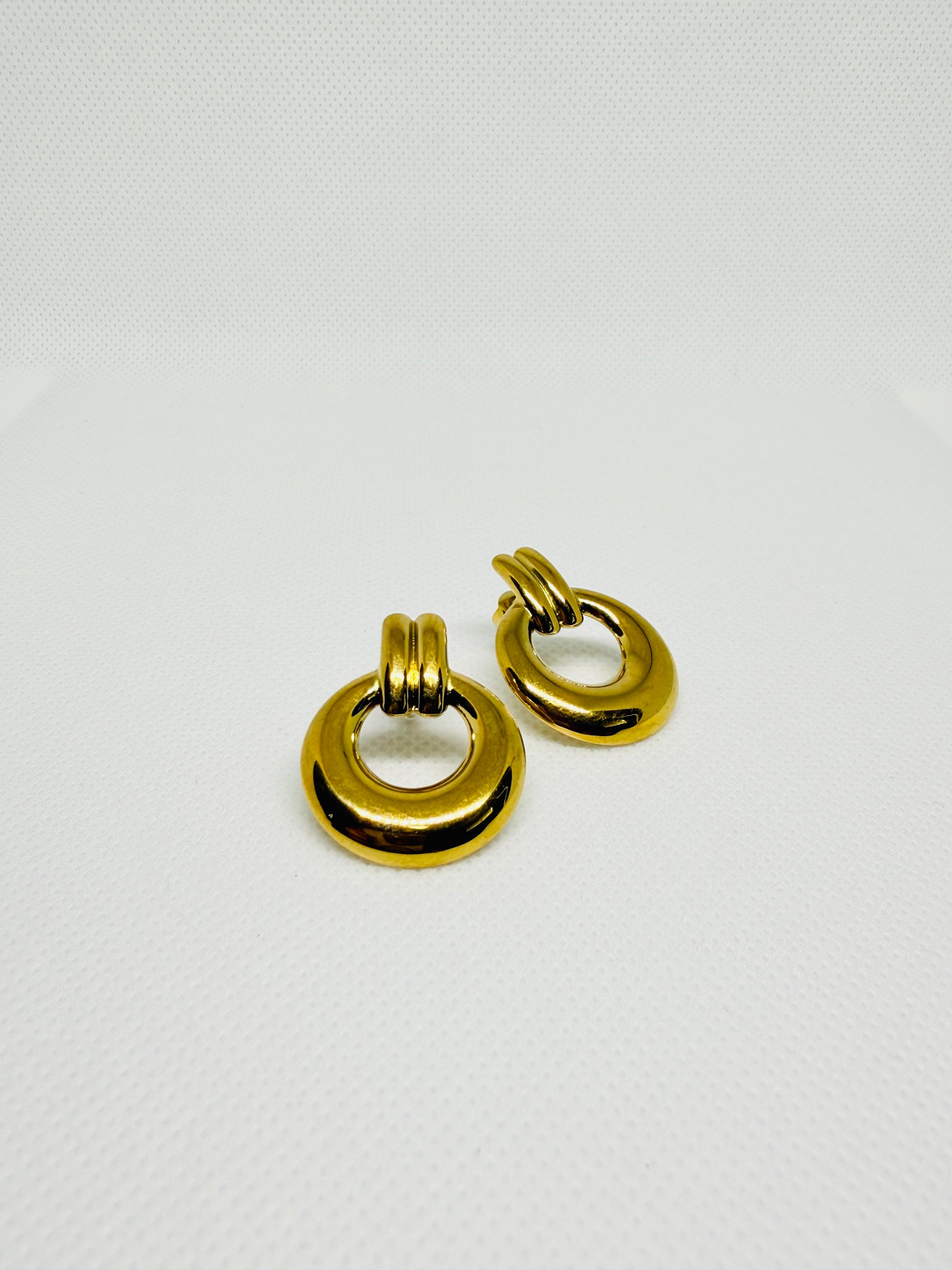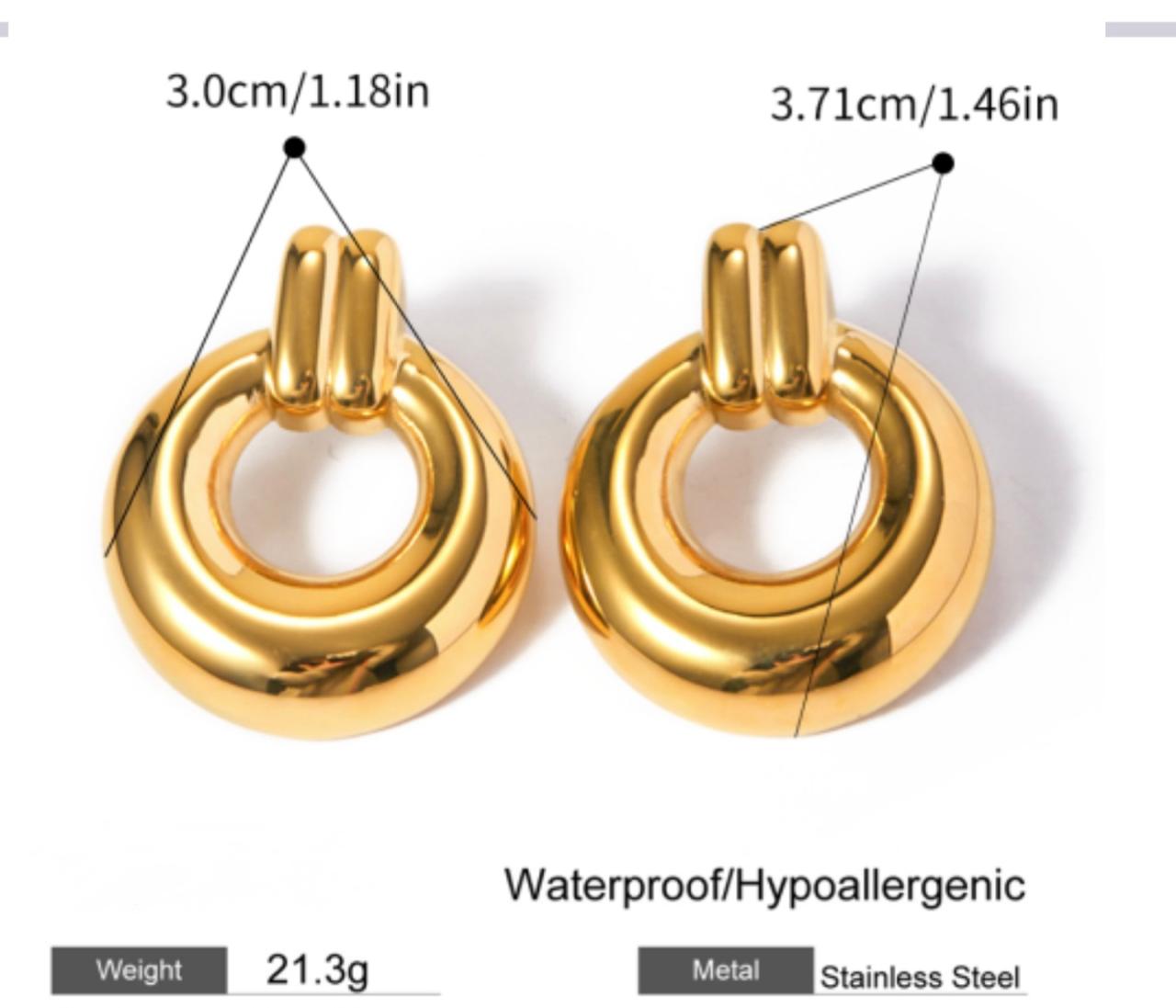 Sleek and modern, these hoop earrings feature a classic round design with a subtle line detail. Crafted in 18K gold-plated stainless steel, they’re durable, non-tarnish, and perfect for everyday elegance.