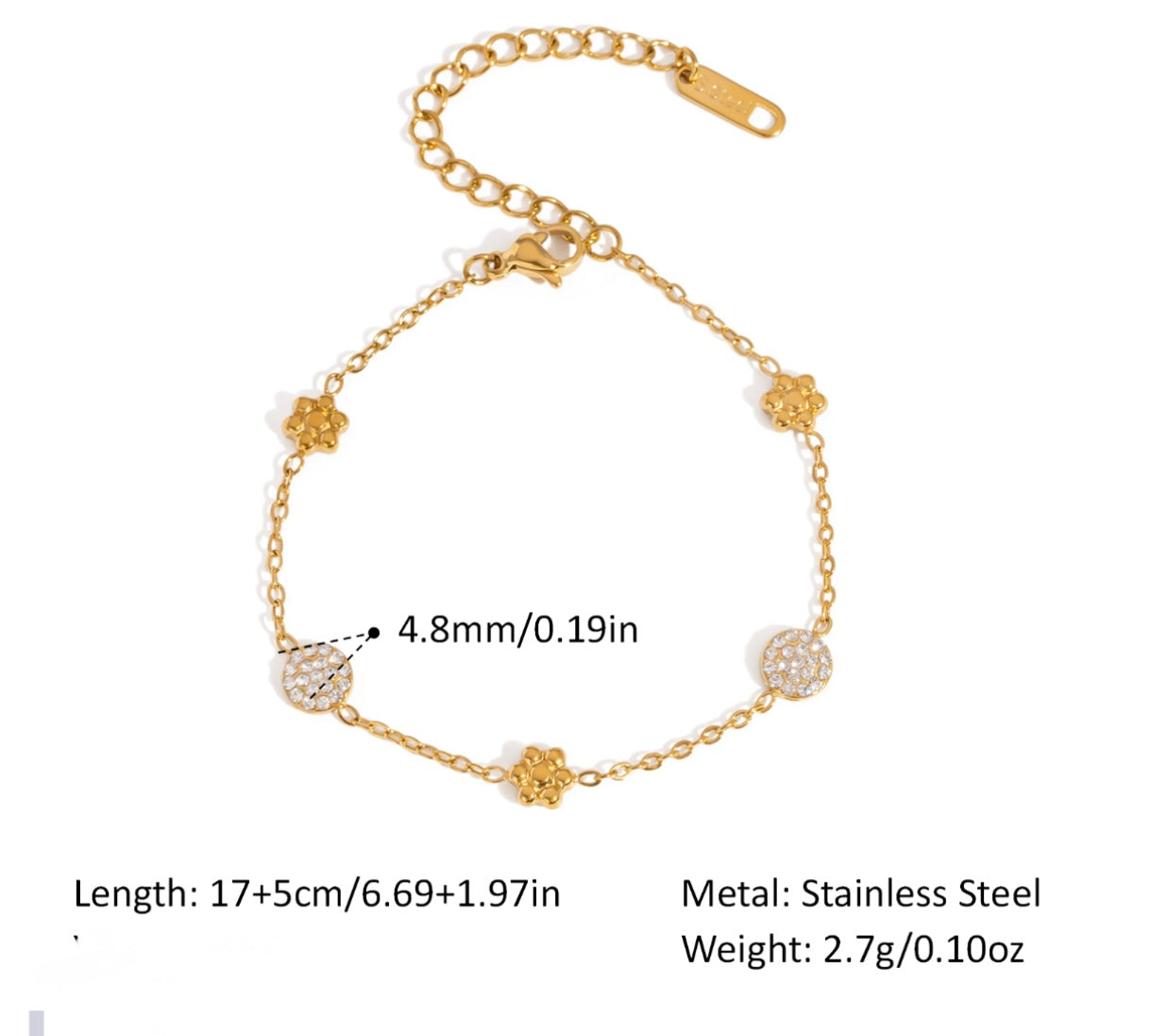 Timeless and charming, this bracelet features intricate floral designs with a vintage-inspired look. Crafted in 18K gold-plated stainless steel, it’s durable, non-tarnish, and perfect for adding a classic, elegant touch to any outfit.