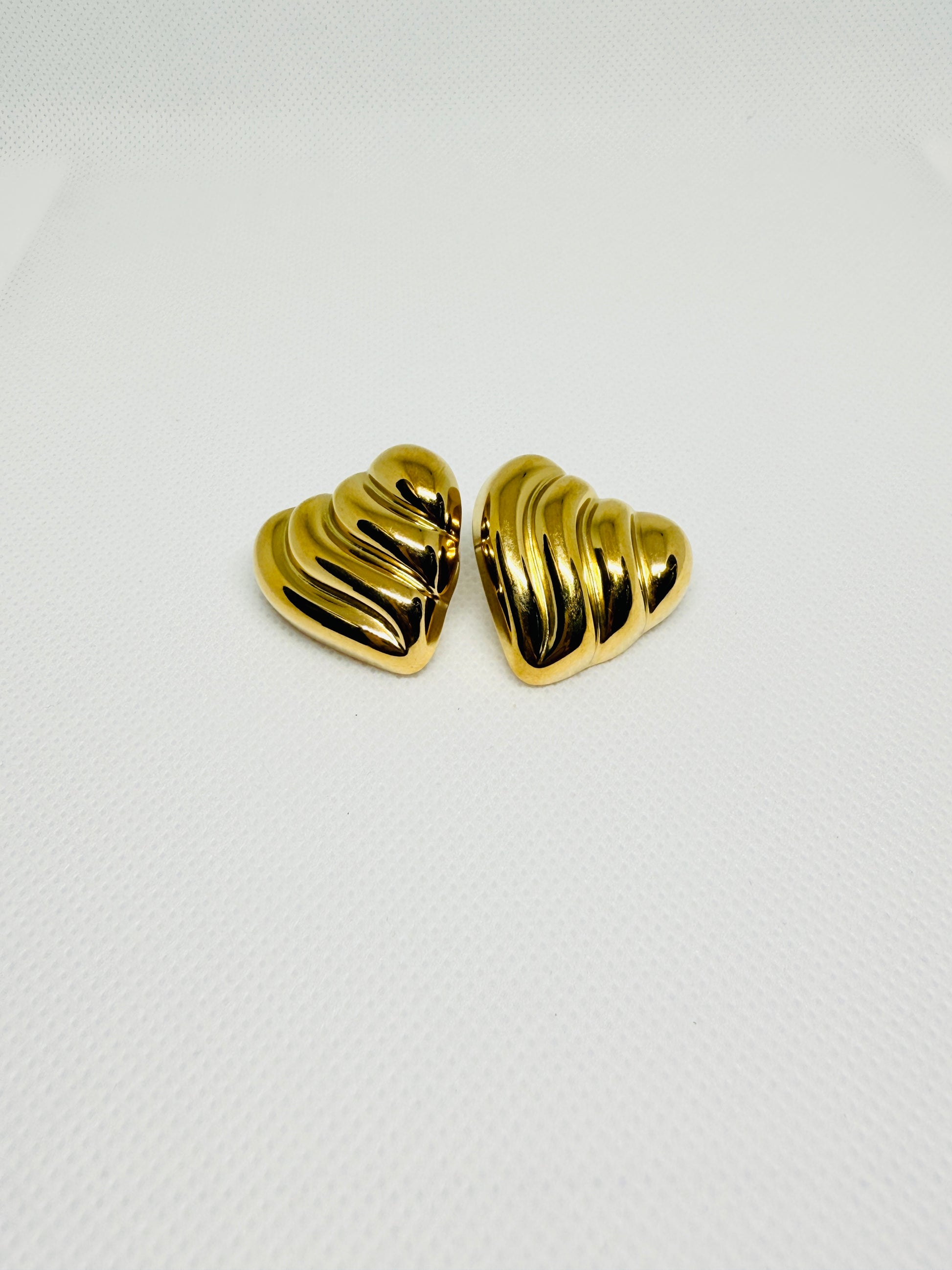 Delicate and playful, these studs feature a wavy heart design crafted in 18K gold-plated stainless steel. Durable, non-tarnish, and perfect for adding a subtle, romantic touch to any outfit.